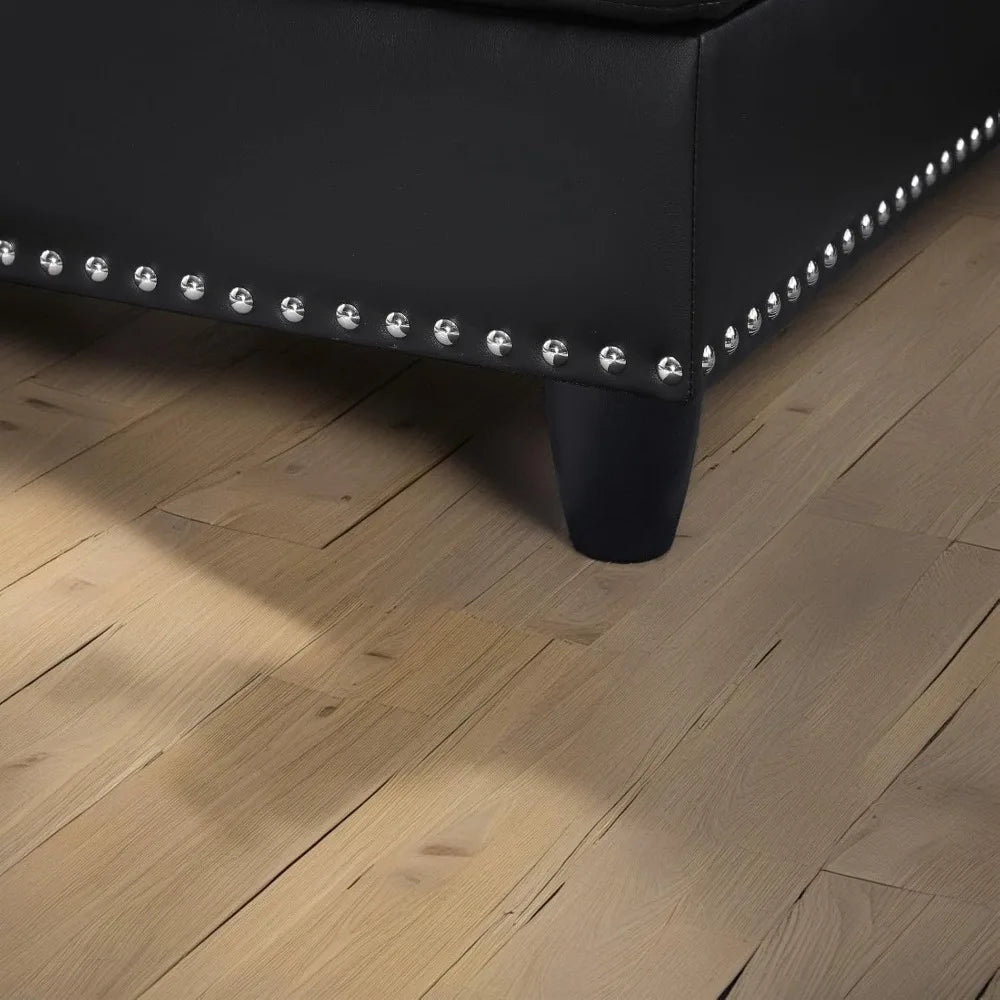 - Stylish & Functional Design: This faux leather modular sectional offers a chic L-shaped design that comfortably seats four, perfect for living rooms of any size. The set includes a matching ottoman with interior storage, ideal for keeping blankets and essentials organized.
