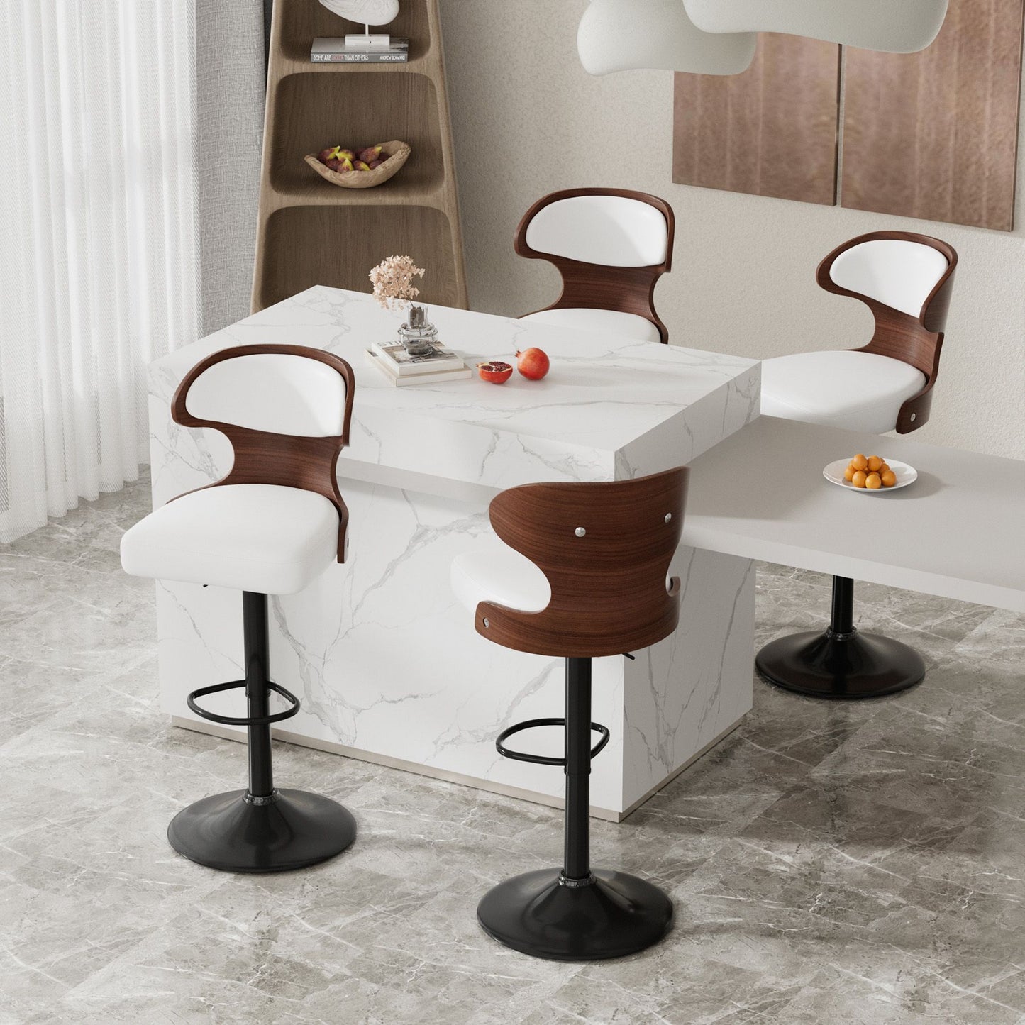 Add a touch of retro-inspired charm and modern comfort to your space with this set of 2 adjustable height bar stools. Featuring a sleek mid-century modern design, these stools are perfect for kitchens, home bars, or dining rooms. The ergonomic backrest and soft foam-padded PU leather seat offer maximum comfort, while the 360° swivel and height adjustment (25.2"-33.8") make them versatile for various counter and bar heights. The sturdy base is equipped with a rubber ring to prevent slipping and protect your floors. Easy to clean and assemble, these bar stools combine style, comfort, and functionality.