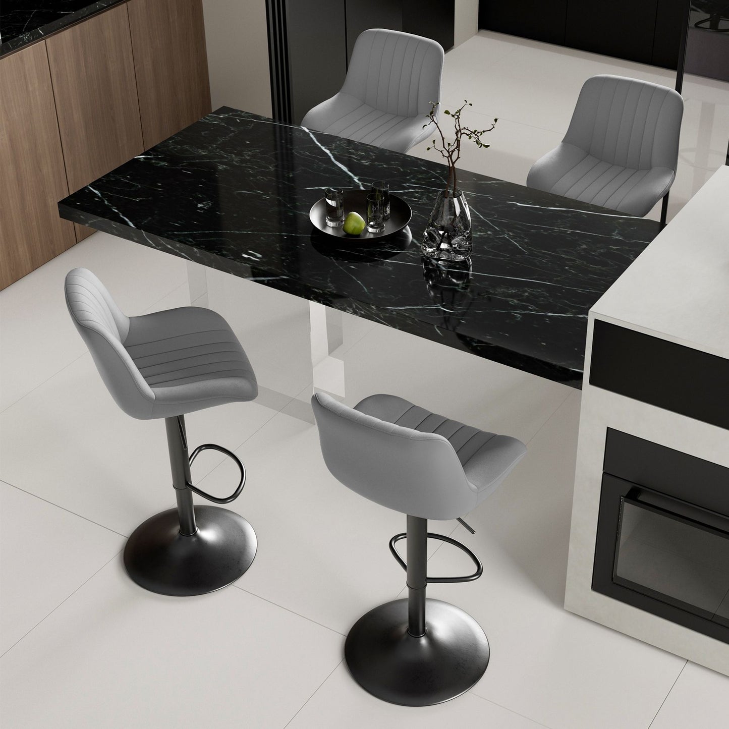 Smooth gas-lift lever adjusts seat height from 23.6" to 31.5" to fit counter or bar tables. Soft, easy-to-clean cushioned seat with a stylish stitched design.