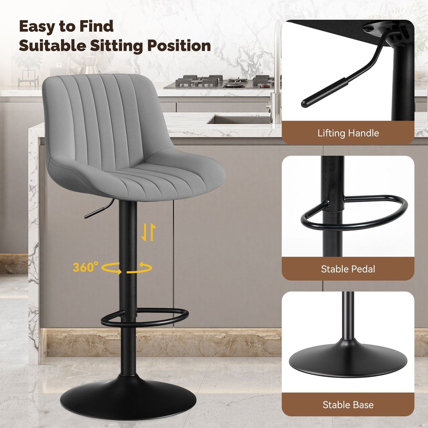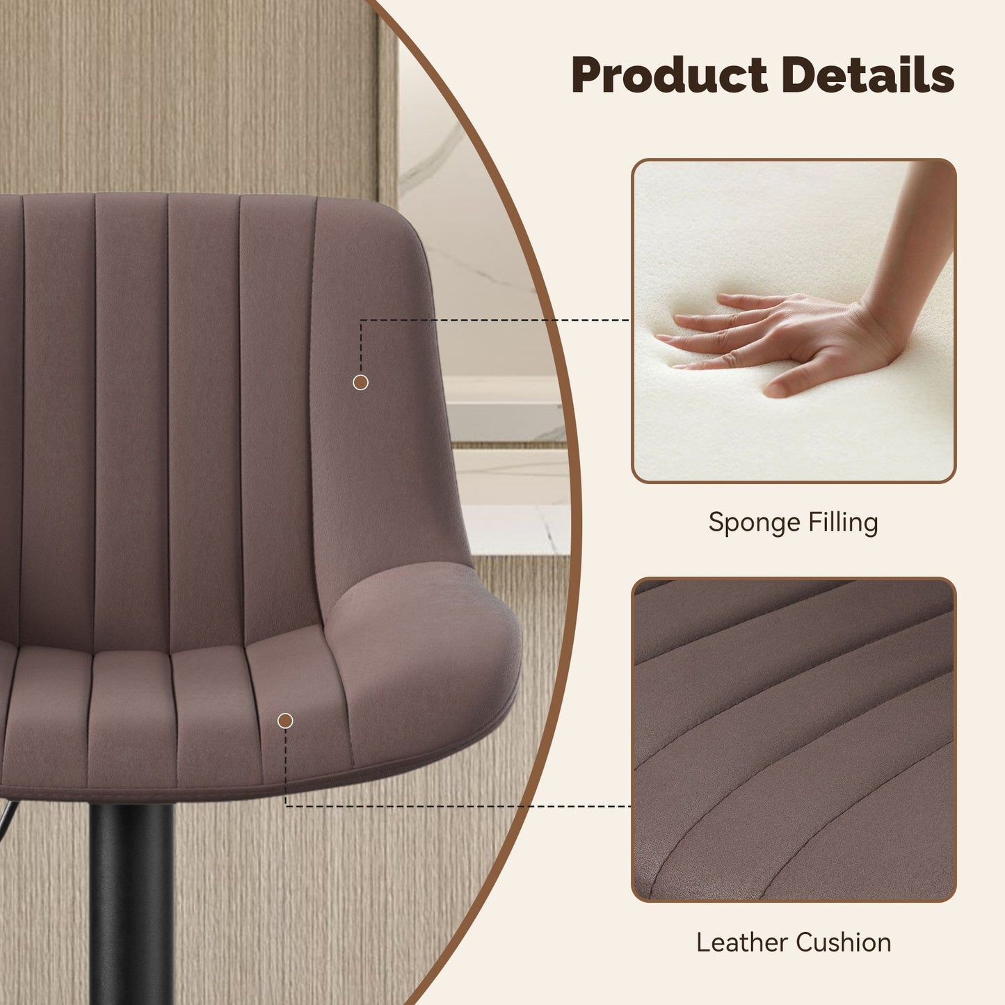 Elevate your dining and entertainment space with these modern PU leather adjustable swivel bar stools. Designed for style, comfort, and versatility, these stools feature cushioned upholstered seats with supportive low backs, perfect for hours of relaxation at your kitchen island, home bar, or café. The gas-lift mechanism allows smooth seat height adjustment between 23.6" counter height and 31.5" bar height, making them suitable for different surfaces. A sturdy chrome pedestal base with integrated footrest ensures stability, while the easy-to-clean PU leather adds long-lasting durability and contemporary appeal.